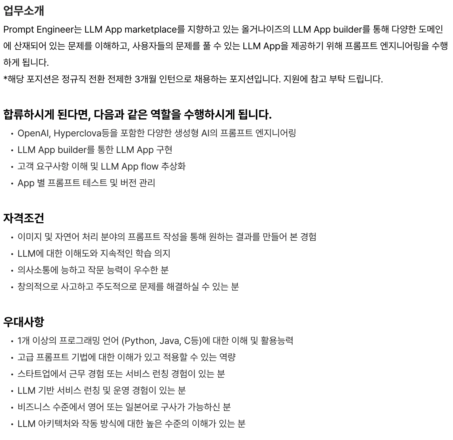 ** AI프롬프트 엔지니어 채용공고 예시 (allganize)