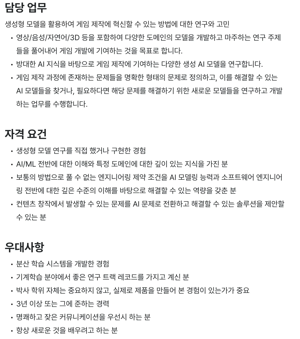 ** 시프트업 AI Research Scientist 채용공고 예시